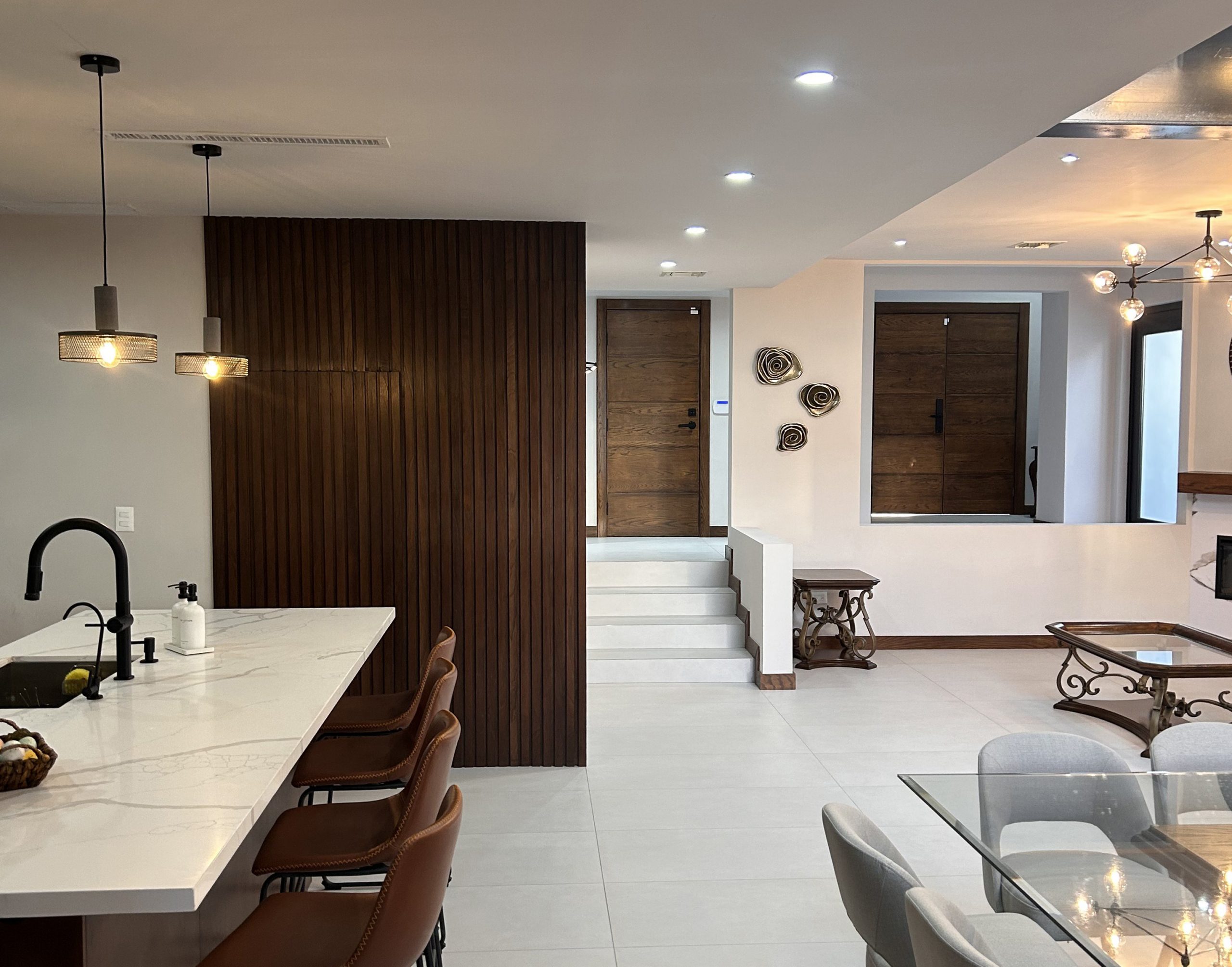En las remodelaciones es claro lo que quiere el cliente siempre: Modernizar. En este proyecto de remodelación se buscó reacomodar los espacios para generar iluminación extra, cambiar los espacios cerrados y confinados por espacios abiertos y llenos de vida, generar una nueva configuración de escalera, para poder comunicar los espacios interiores y exteriores, así como cambiar los acabados para poder darle un toque moderno que el cliente estaba buscando, el resultado: Cliente 100% Satisfecho.
