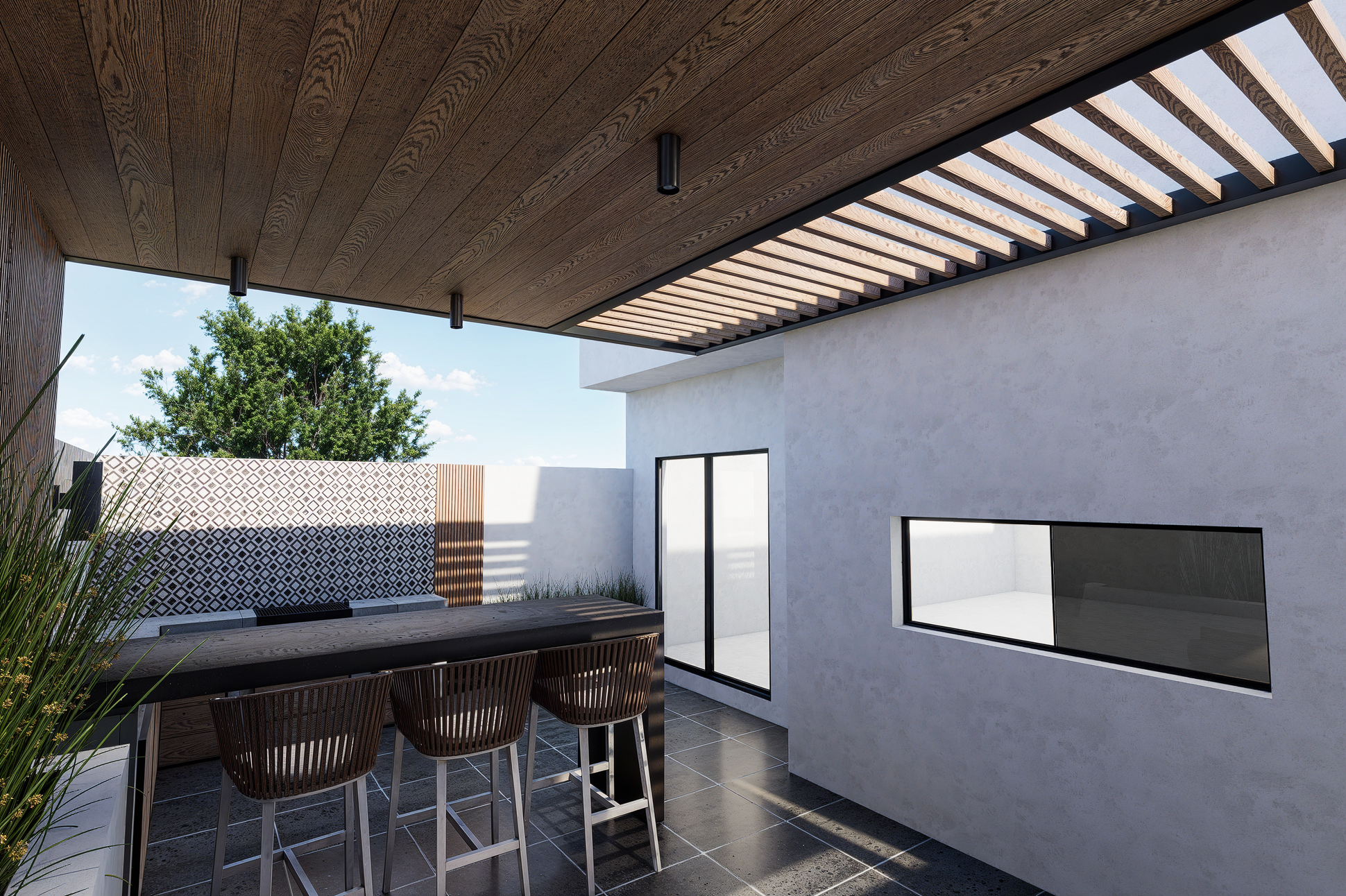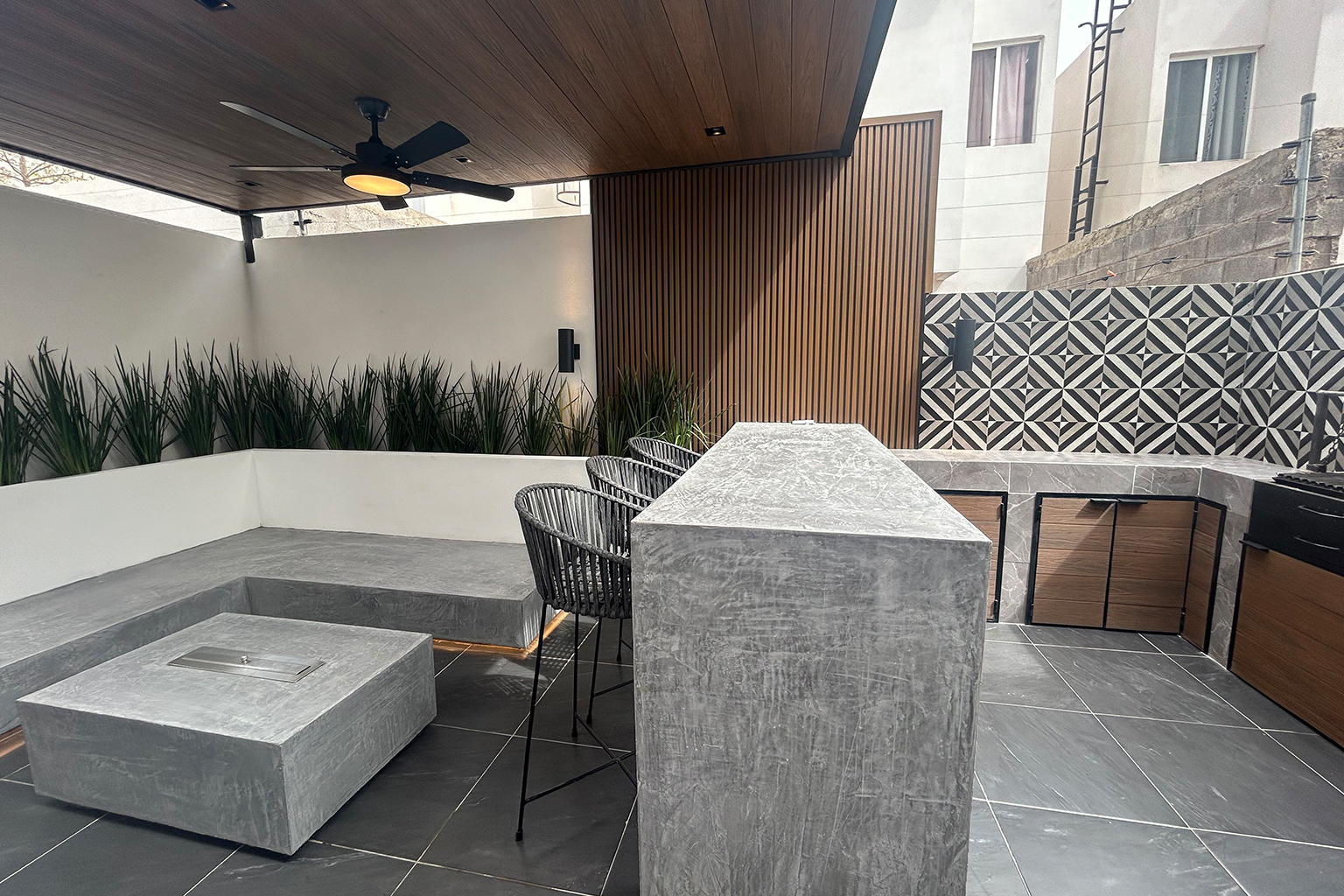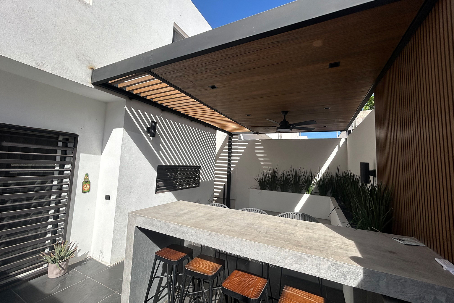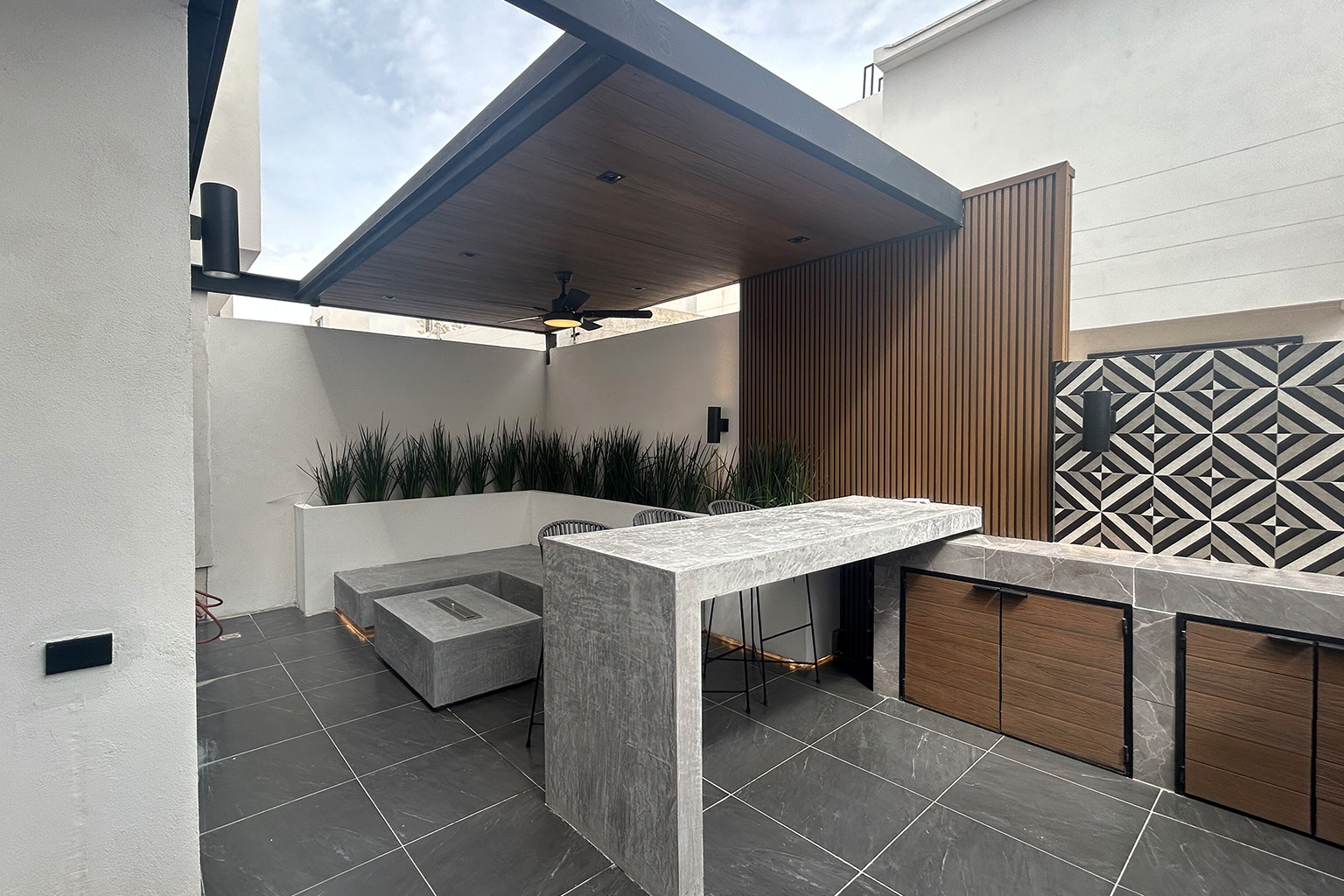 En este proyecto de remodelación, transformamos un patio de dimensiones reducidas en un espacio funcional y acogedor, diseñado para propiciar la convivencia y el disfrute en familia y con amigos. El área integra un asador, una iluminación cuidadosamente diseñada y una selección de materiales que aportan calidez y una sensación natural al conjunto.