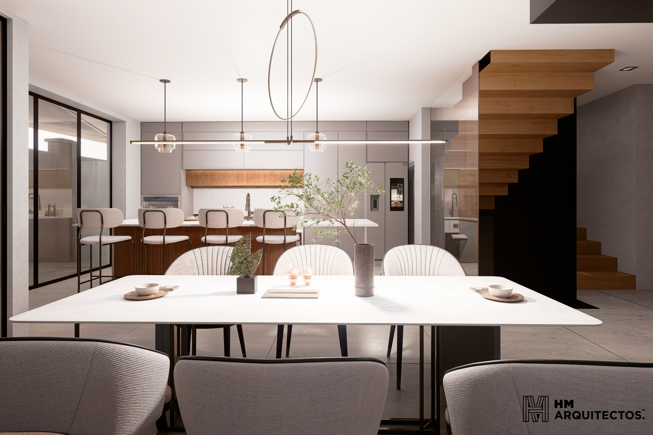 Proyecto de vivienda unifamiliar de tres niveles desarrollado bajo un enfoque de arquitectura contemporánea, caracterizado por una composición de volúmenes ortogonales, contrastes de materiales y líneas limpias que aportan una imagen sobria, elegante y atemporal.